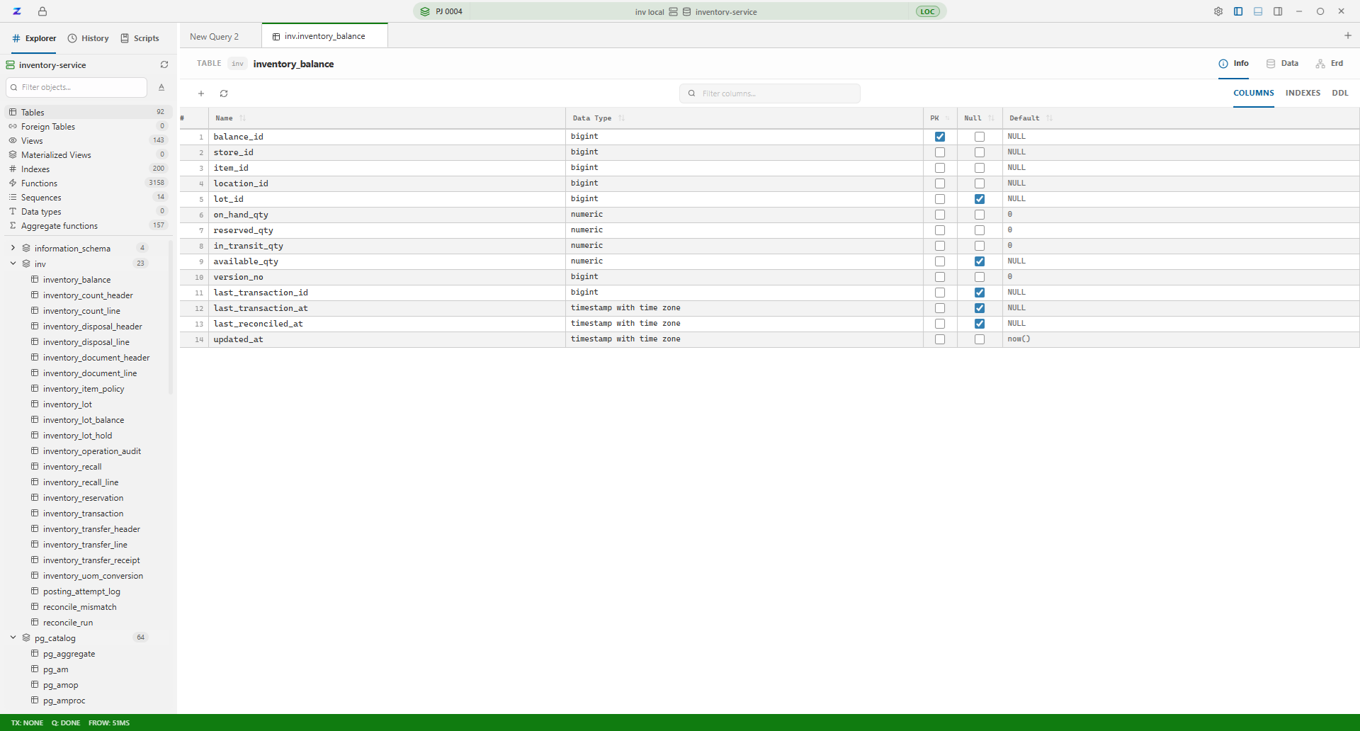 Your editor, your history, your saved scripts — all scoped to this project and environment. No switching tabs between unrelated databases.
